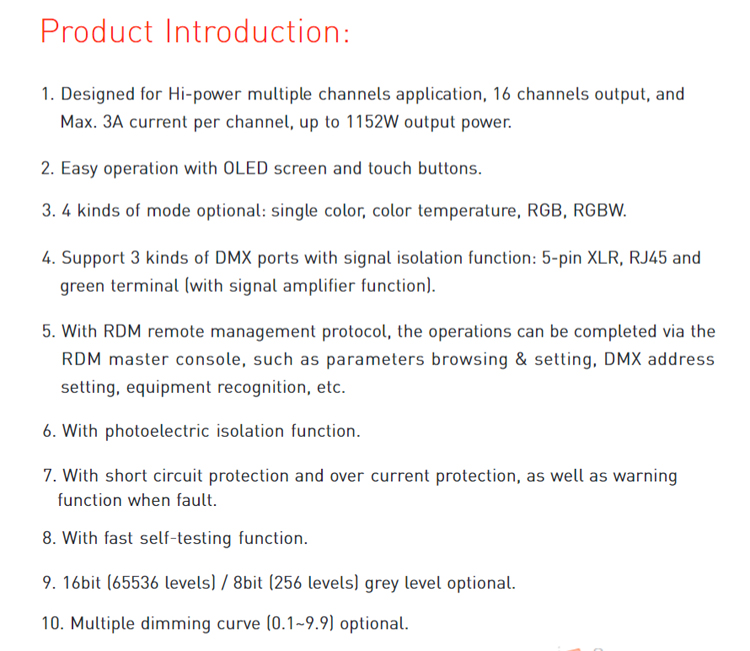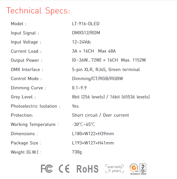 We are interested in product 『LT-916-OLED 16CH CV DMX Decoder 』. Please give me price and details