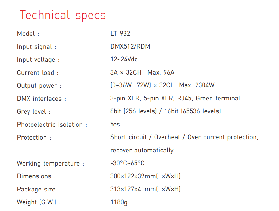 1. Designed for Hi-power multiple channels application, 32 channels output, and upto 2304W output power.
